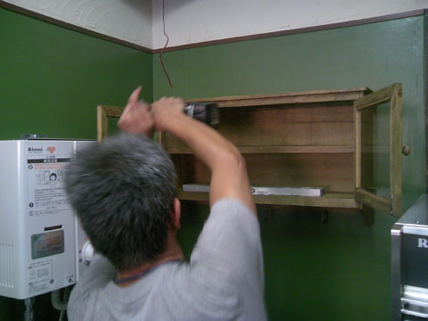 店舗の工事、その27。食器棚購入&取り付け。