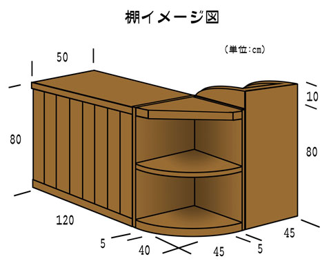 正直なところ使いたい棚の形のイメージ(左図面)が出来てしまっているので既製品は厳しいだろうな~と考えていましたが、なんとかしないとと思い、ネットで木工業者を探しまくって出てきたのが三重県のとある業者。こちらはカントリー家具専門で作っているということで、かなり低価格でオリジナル家具を作ってくれるとのこと。1度見積りを取ってみると速攻で返事が来たのですが確かに安い。ほぼココで決定かと思ってますが、実は滋賀のお友達のお父さんが木工所をやってるのでそこに頼もうかとも考えているんですよね。