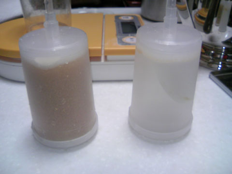 ちなみにウォーターソフトナーですが、やっぱり無いと怖い(保証などの面からも)ので結局追加で注文しました。なんと1個4000円。でかい出費です。送料がもったいないのでついでに将来掃除する時のためにブラインドフィルターも一緒に購入。今度は失敗しないようにしたいですね・・・。これからマシン購入をお考えの皆さん、気をつけて下さい・・・。(写真左:正常なソフトナー、写真右:中身がぶっ飛んだソフトナー)