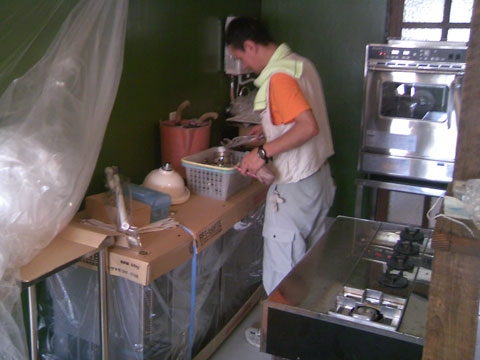 しかしながら逆に今まで2階にあったシンクが1階に下りてきたことで2階で水道が使えなくなり、メニューの試作がまったく出来ない状況に・・・。まぁ壁塗りなどの作業がまだまだあるので、どちらにしても当分調理はできないのですが・・・(^^;)