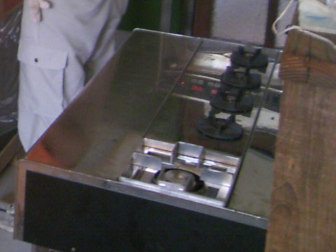 そしてガス屋さんがこのガステーブルを梱包から解いてガス管を接続し、いざテストとなった時に「ここ、火が出るバーナー入ってませんよ!」と言われたので、その場に居た全員が「えぇぇぇ!?」と驚きの声。確認してみると確かに何も入っていません。ただの空洞・・・。